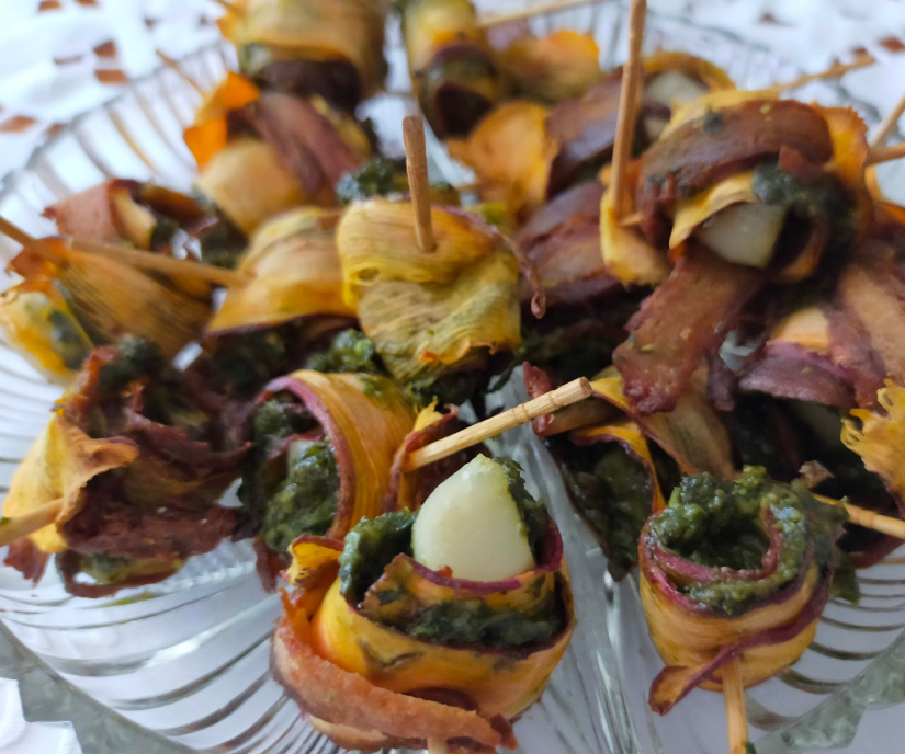 How would you rate Sweet potato, Macon and pesto roll-ups?